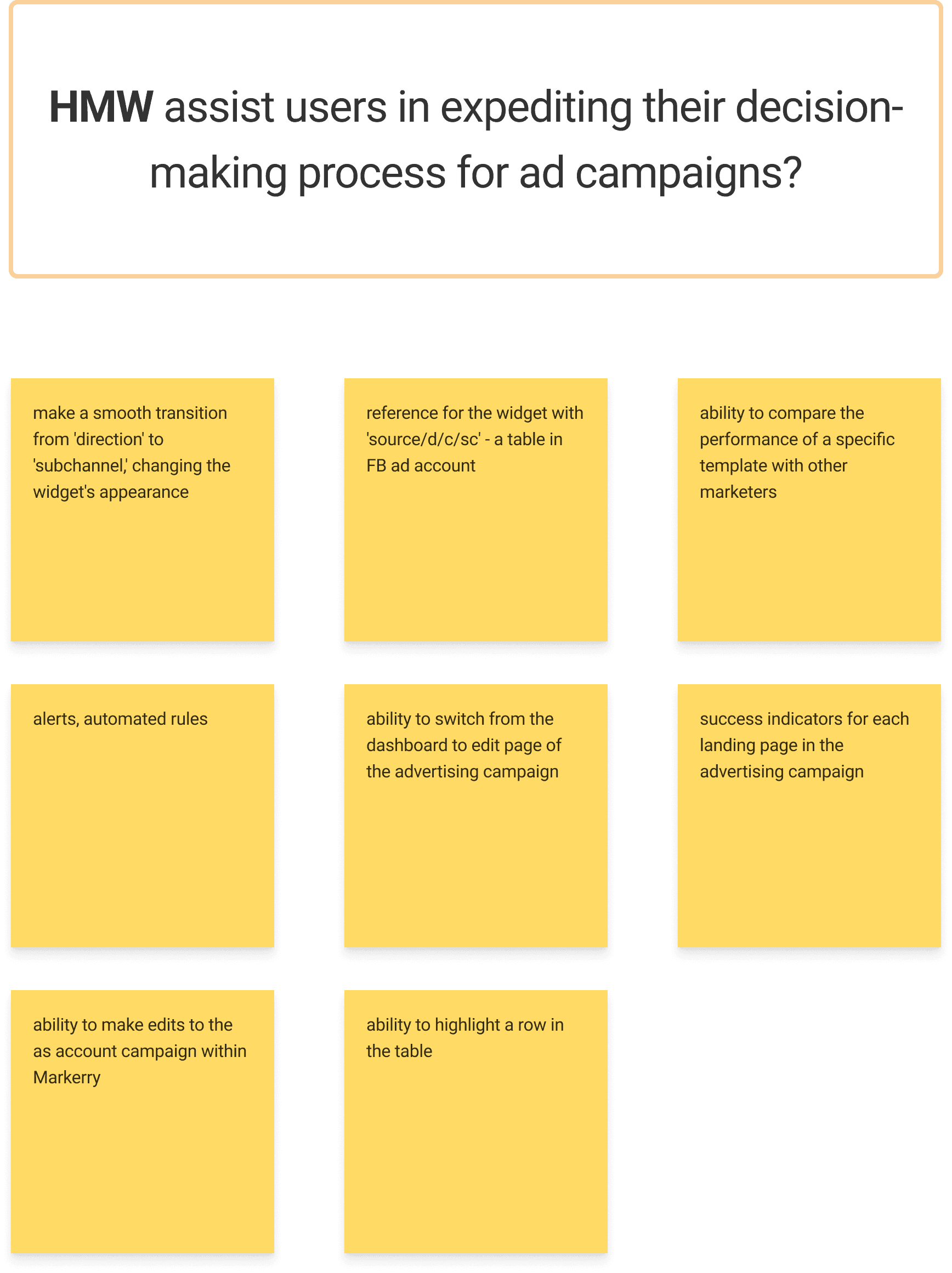HMW-questions that stated the problem with solutions suggested