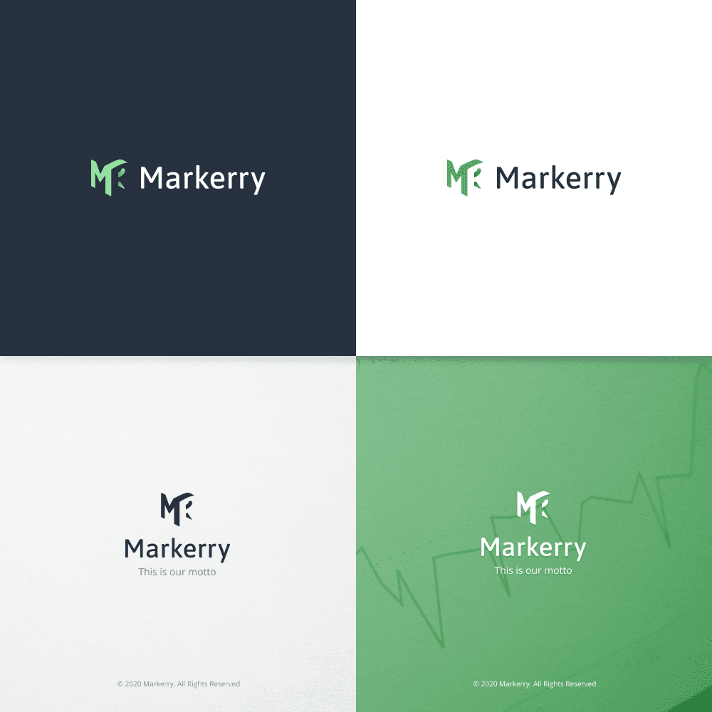 We wanted Markerry to be associated with wealth and success, so I picked green as the main color and dark blue as the secondary one. When creating a logo, I tried using an arrow pointing up to signify growth and accomplishment. Eventually, we ended up choosing a simpler version that yet conveyed confidence and reliability.