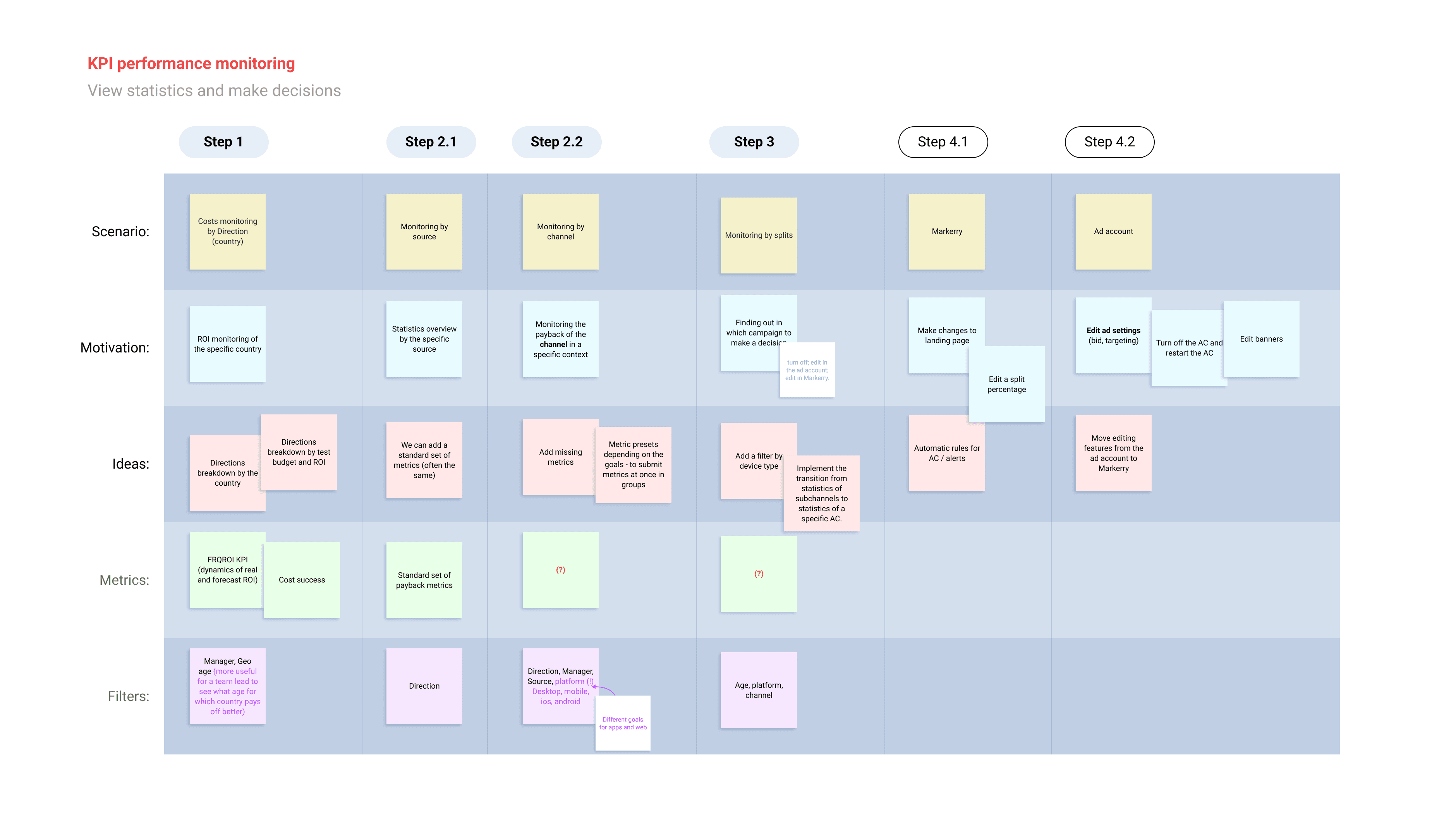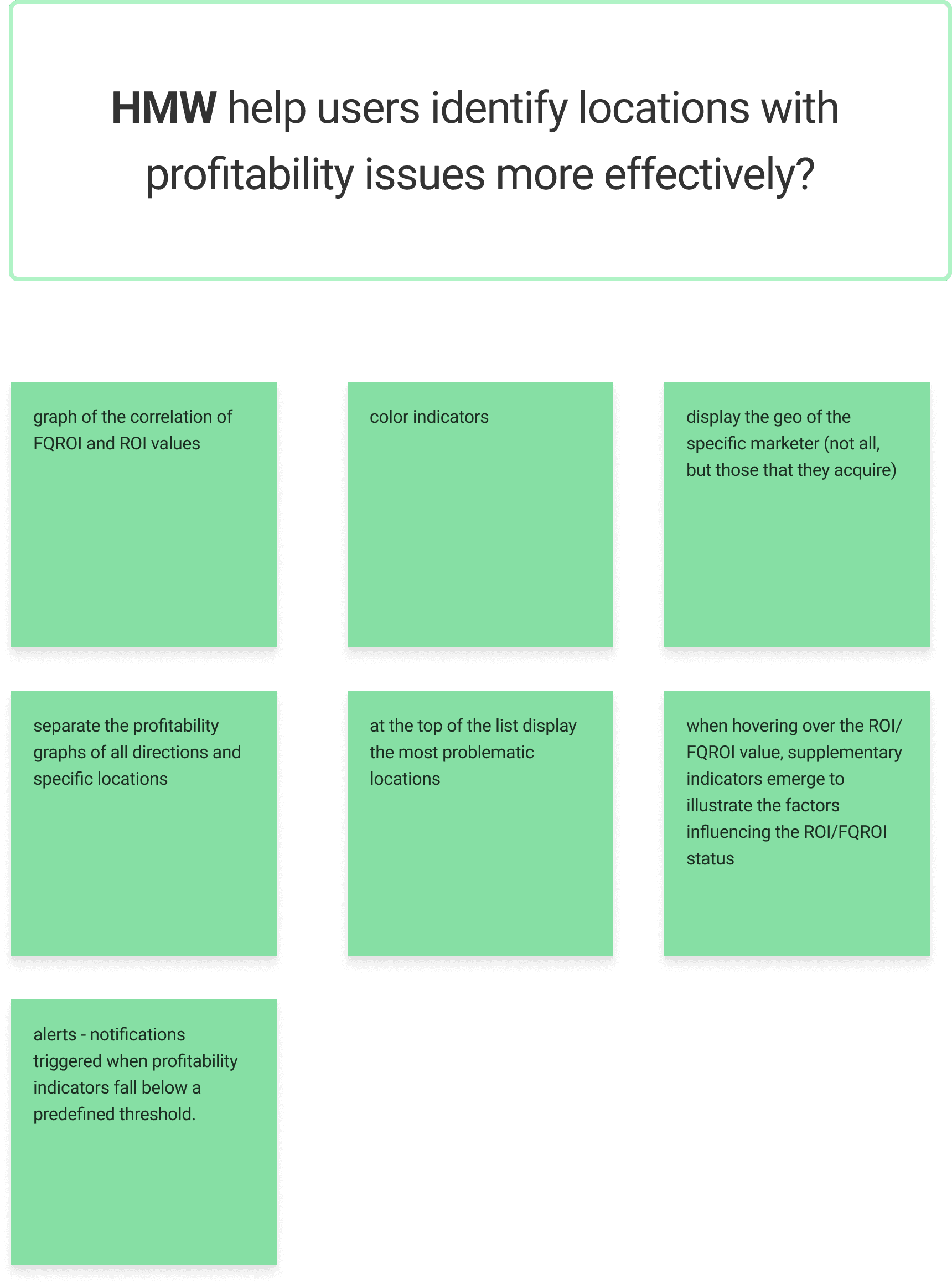 Creating a picture of metrics hierarchy and their effect on reality helped to gain an understanding of the issues to be solved. Later, they were stated as a How-Might-We questions.