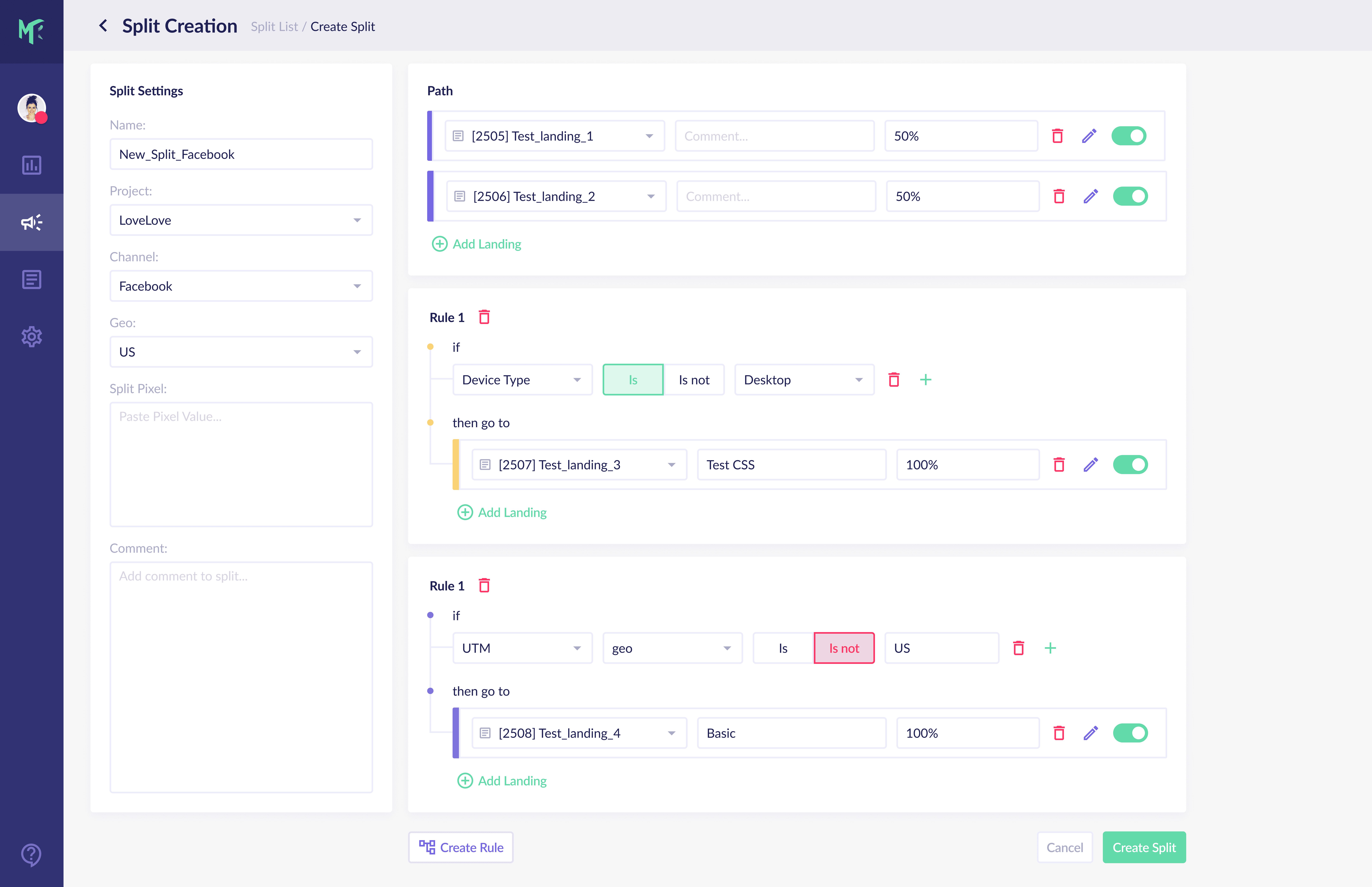 Markerry is a SaaS tool that helps media buyers create and manage splits with personalized landing pages and traffic distribution rules. Also, within this tool, users can track statistics for these splits.